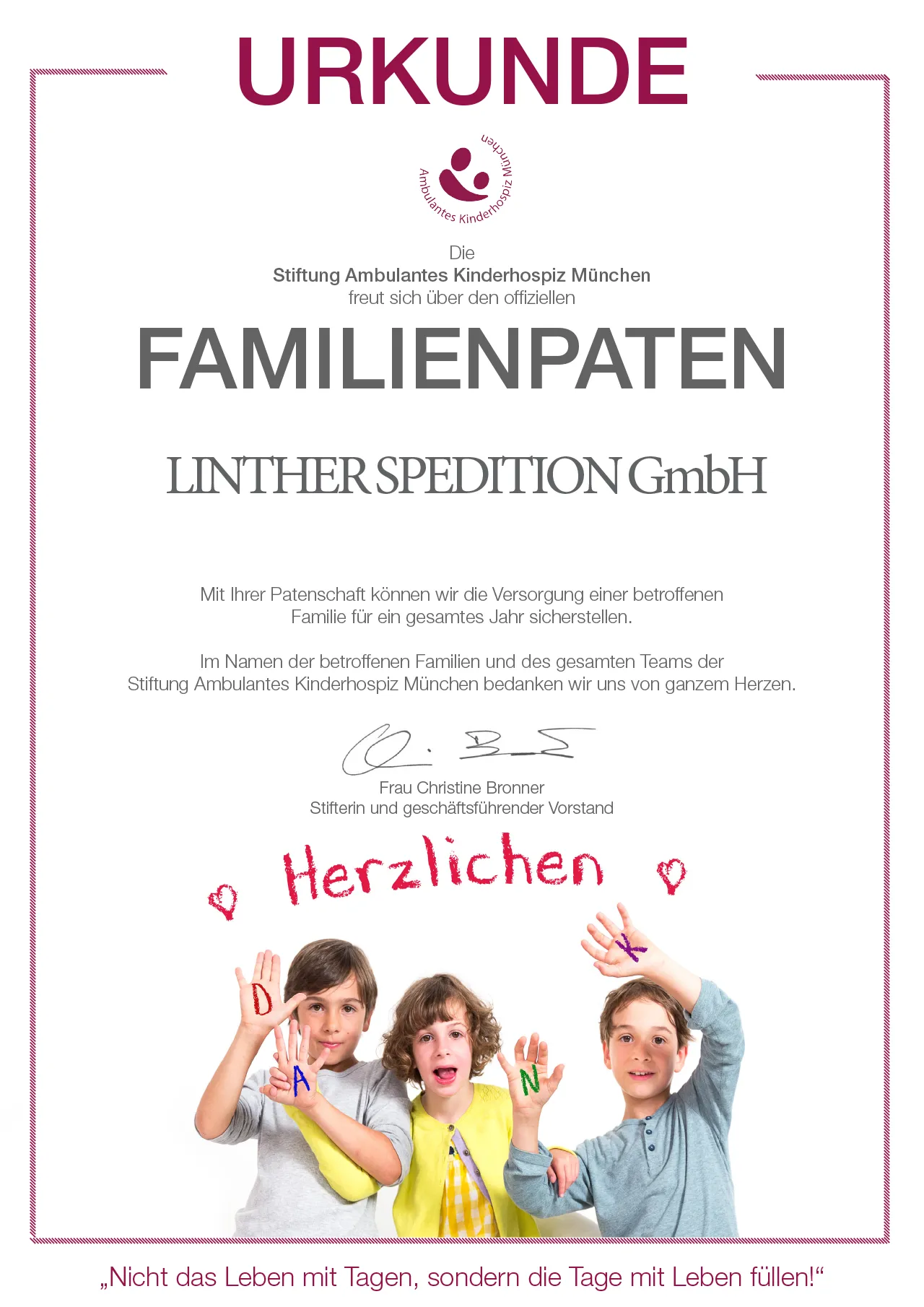Deshalb unterstützen wir das Ambulante Kinderhospiz München. Hier begleiten wir die wichtige Arbeit für schwerst- und lebensbedrohlich erkrankte Kinder und ihre Familien mit regelmäßiger Hilfe.